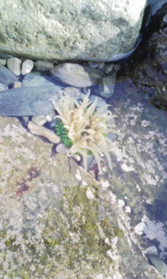 イソギンチャク(根元が毒々しい緑 笑)を突いて遊んでみたり・・・